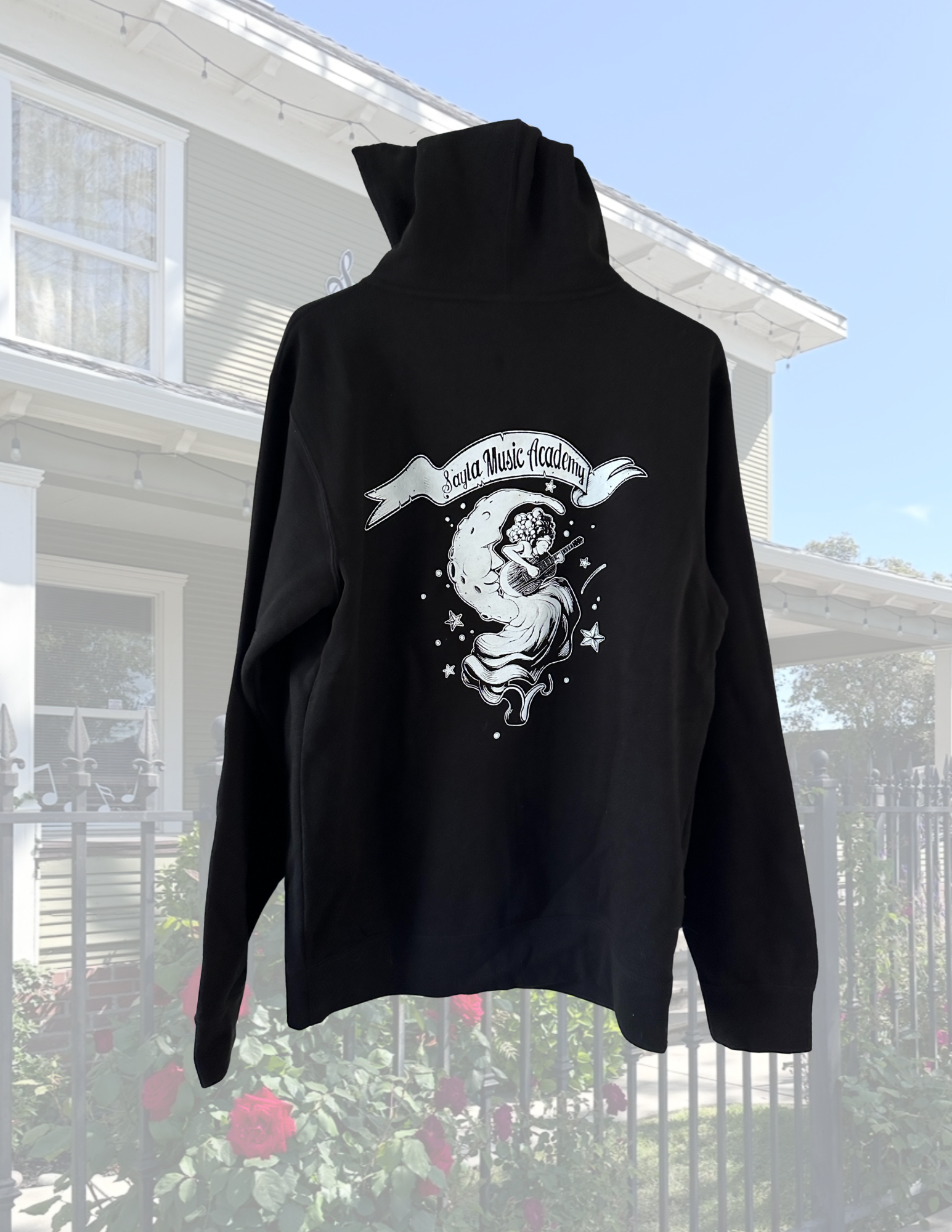 This Zip-up Hoodie features custom art from @Kolourlab. Support your favorite music academy and purchase a Sayla “Moon” Hoodie today!